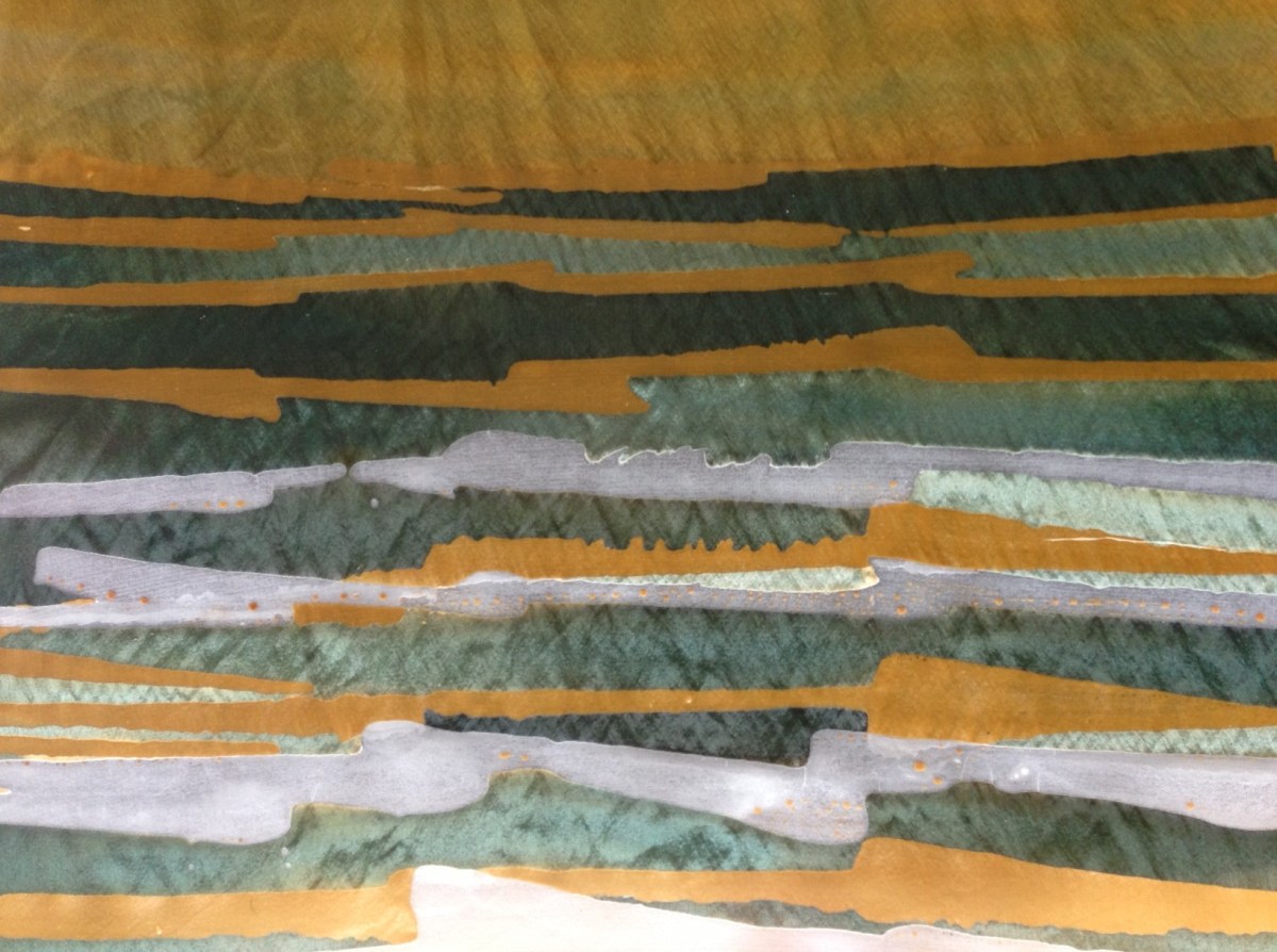 work March 3, 2013 by Persicaria Leave a comment ← Previous Image Work in progress showing wax over white areas; gold areas are Himalayan Rhubarb;greens are created by dilutions of Saxon Blue