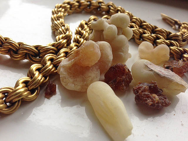 Gold, frankincense and myrrh (the dark grains)